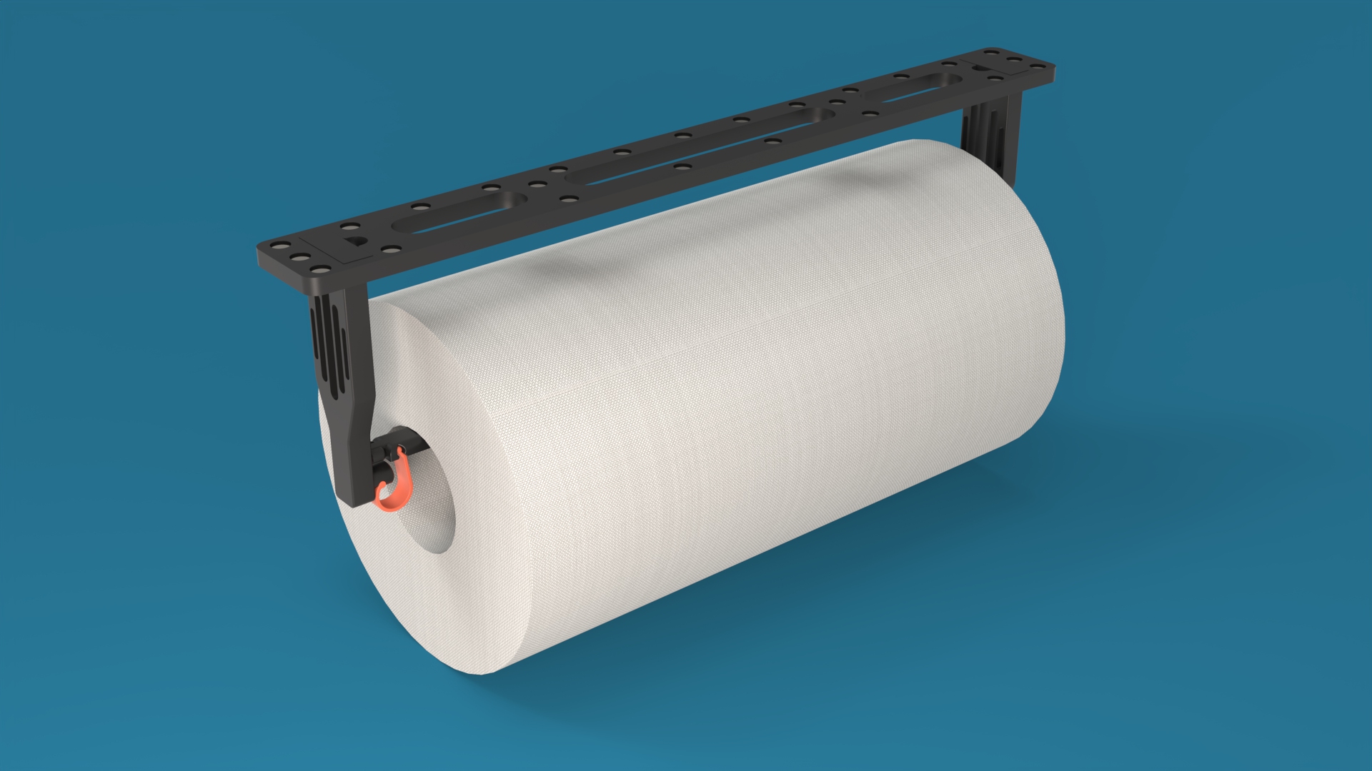 A flatpack, universally compatible kitchen roll holder designed for easy transport and long-term durability. Developed specifically for use in a compact camping van, the design emphasizes lightweight construction, tool-free assembly, resistance against strong vibrations (i.e. the roll can never fall off) and space efficiency.