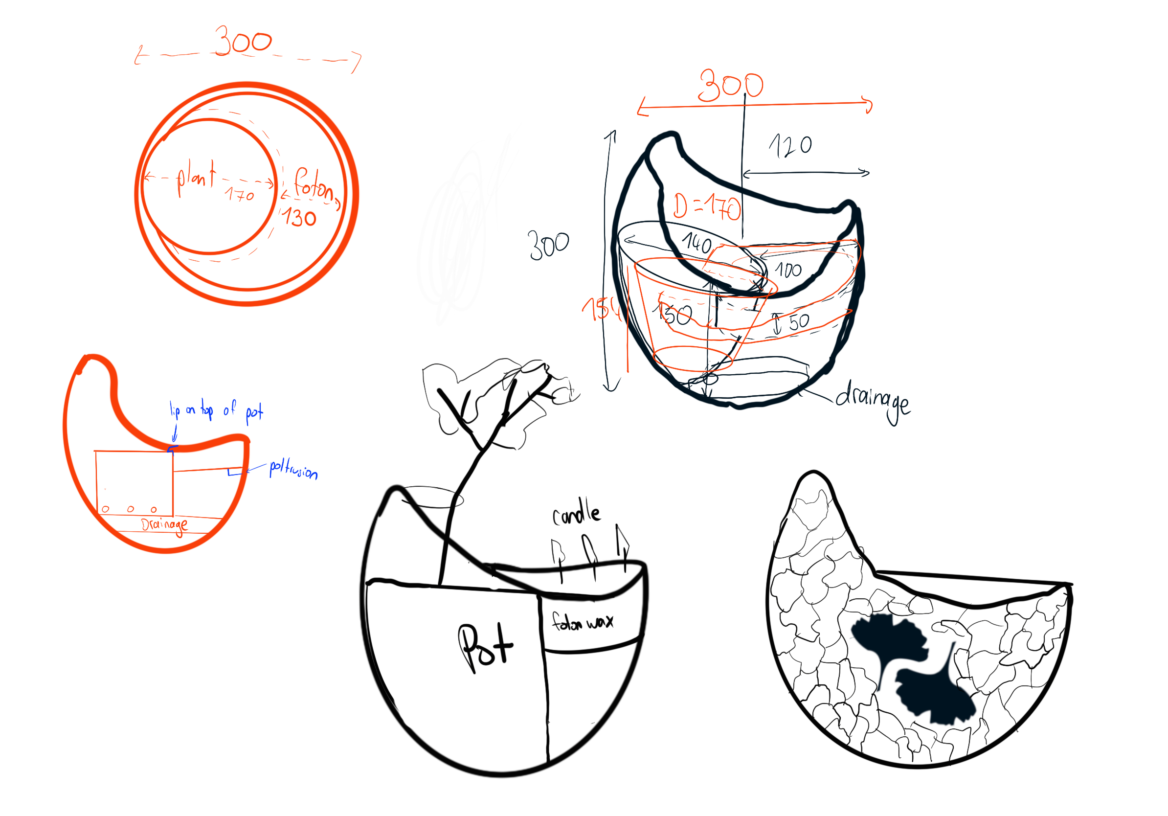 Designed in memory of my late grandfather, the vase serves as a memorial piece intended to hold remembrance candles and a young oak sapling grown from the tree under which he was buried. The Ginkgo leaf emblem on the front mirrors the one placed on his urn, creating a direct connection between object and memory.